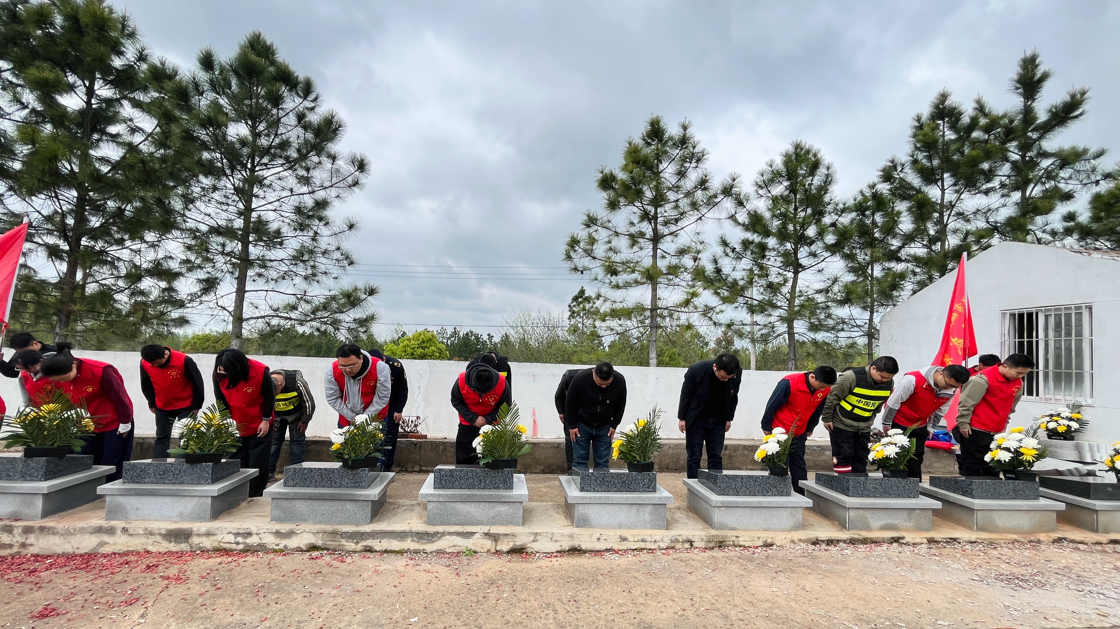 他们认真清扫墓区落叶杂物、仔细擦拭墓碑,在烈士墓碑前整齐列队,向先烈敬献花篮、鞠躬致哀,党员们重温入党誓词,铮铮誓言尽显他们传承革命精神、砥砺奋进的坚定信心。