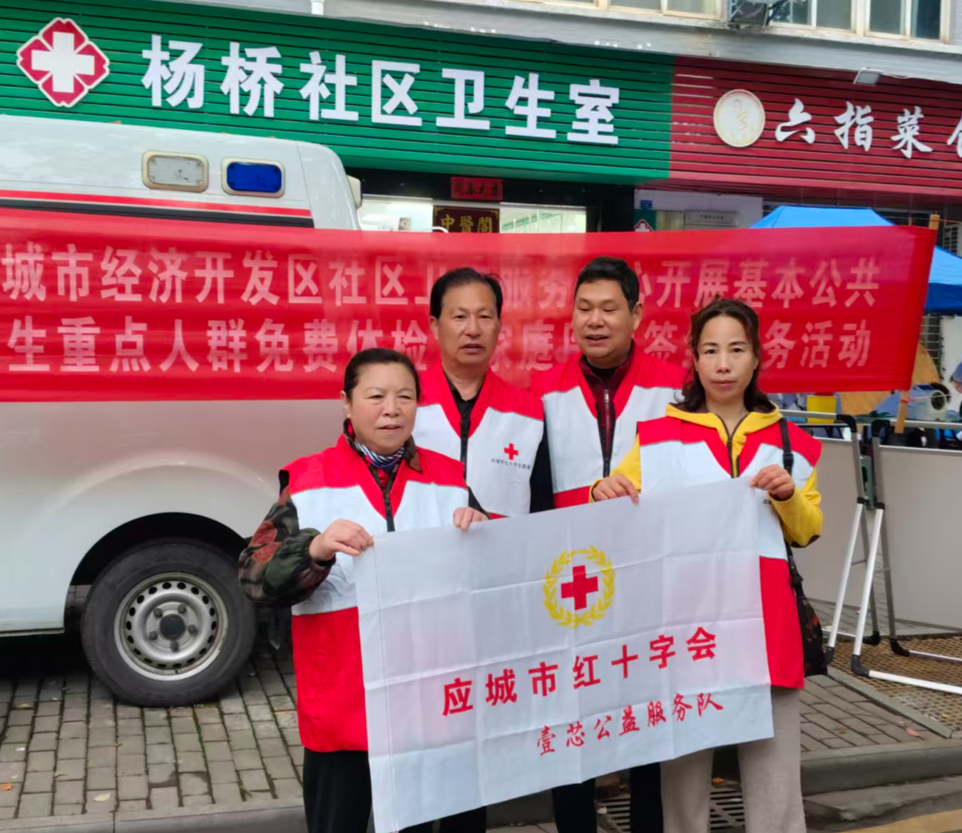 近日,应城市红十字会壹芯公益服务队组织志愿者,为杨桥社区居民健康体检提供志愿服务。