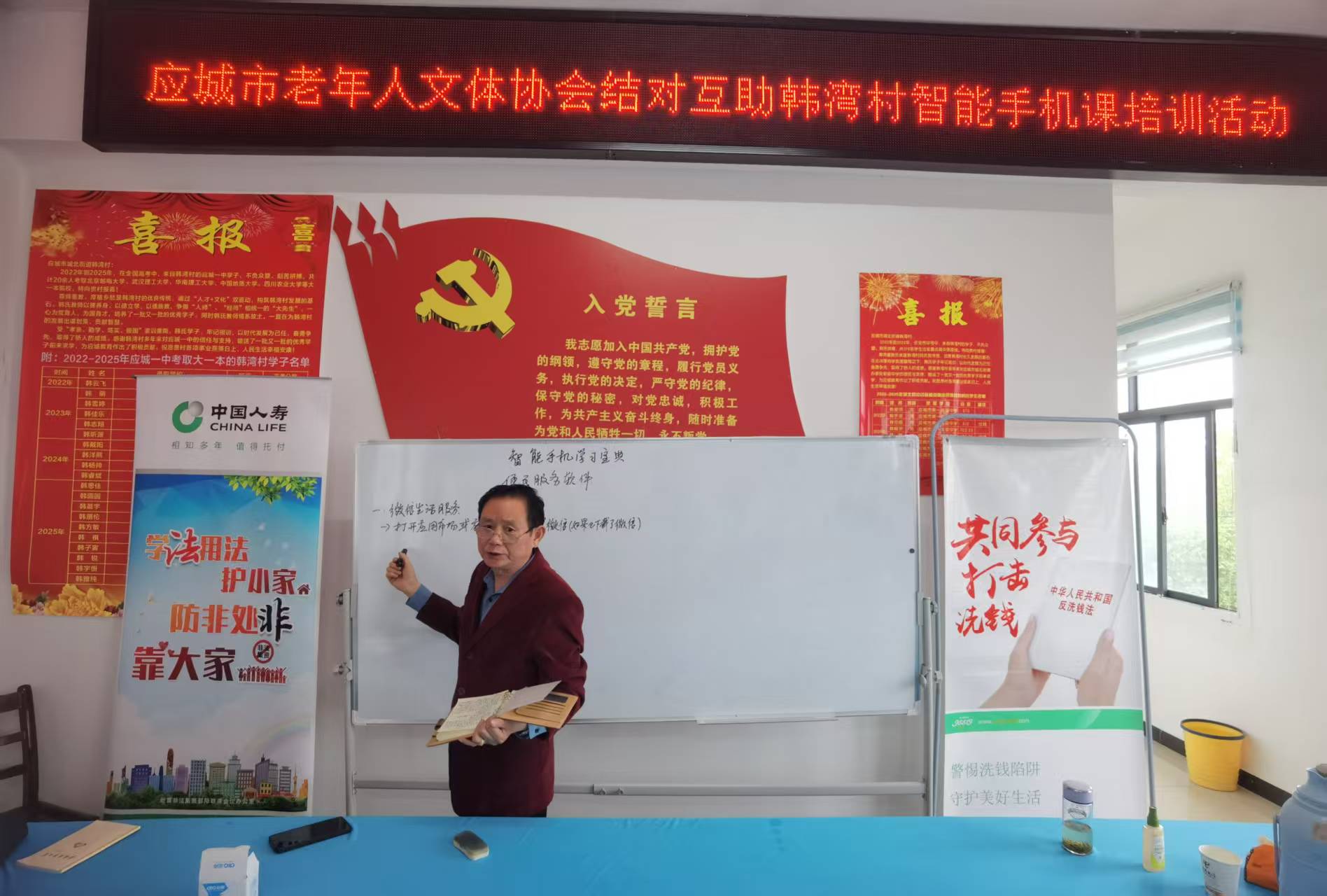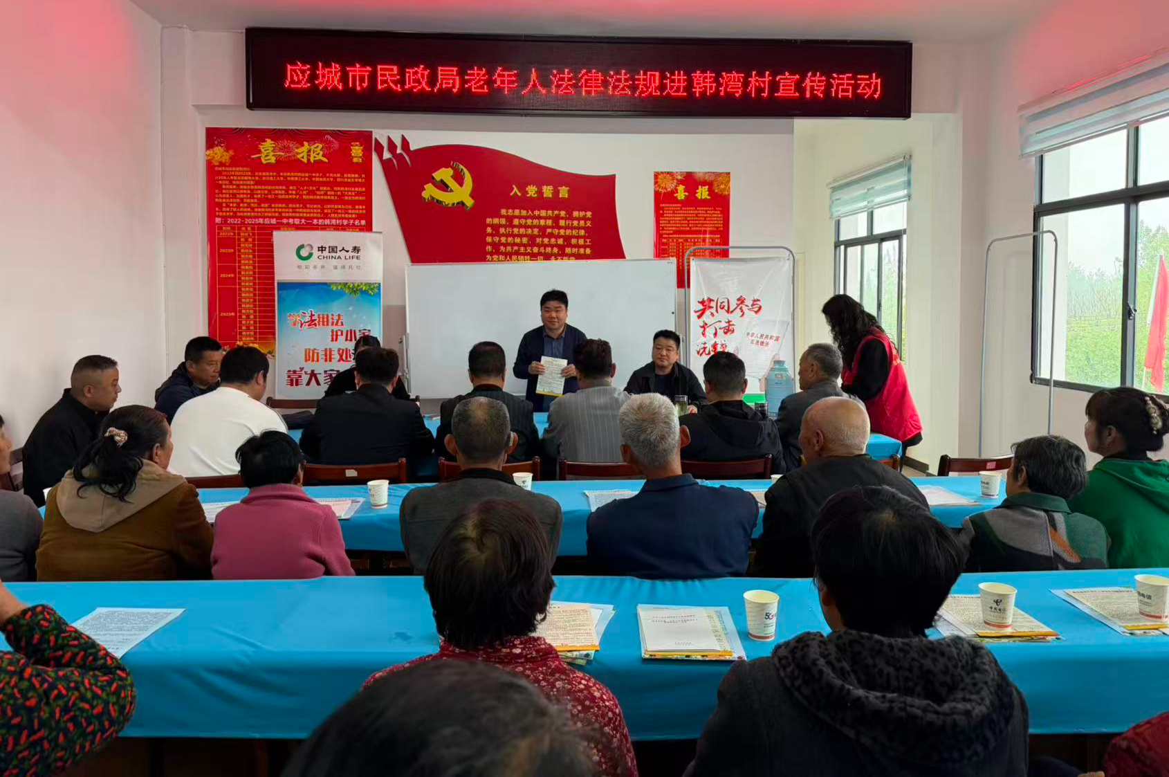 4月9日上午,应城市民政局联合应城市人寿保险公司、应城市老年大学,走进应城市城北街道韩湾村,对韩湾村老年群体开展老年人政策法规、老年人意外伤害保险和智能手机的宣传培训活动,吸引了村里众多老年人参与。