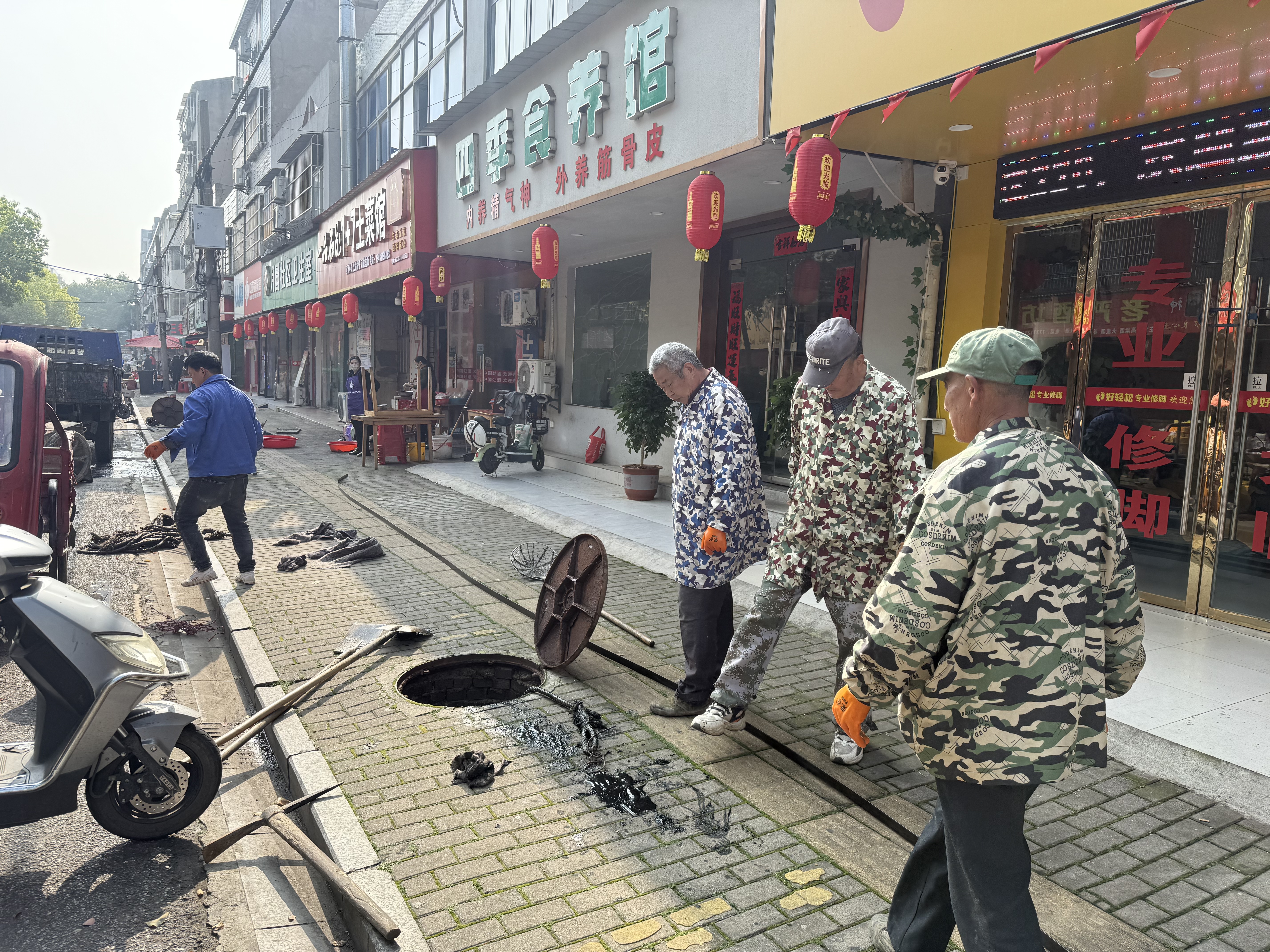 施工人员对路面坑槽、破损部位修补平整,改善路段通行条件,有效解决群众出行不便问题。