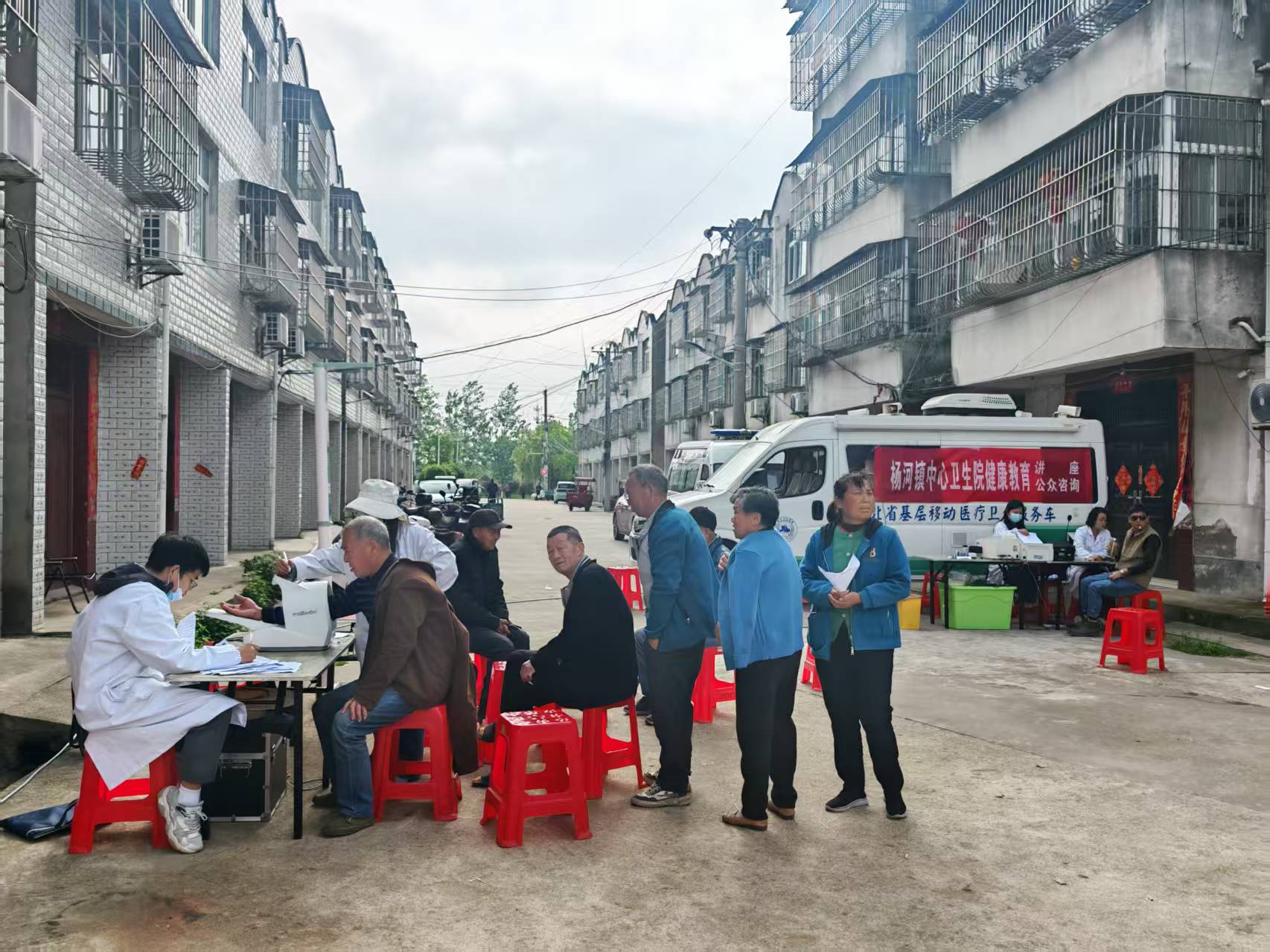 4月13日,应城市杨河镇中心卫生院走进该镇西合村,开展免费健康体检及健康知识宣传活动。