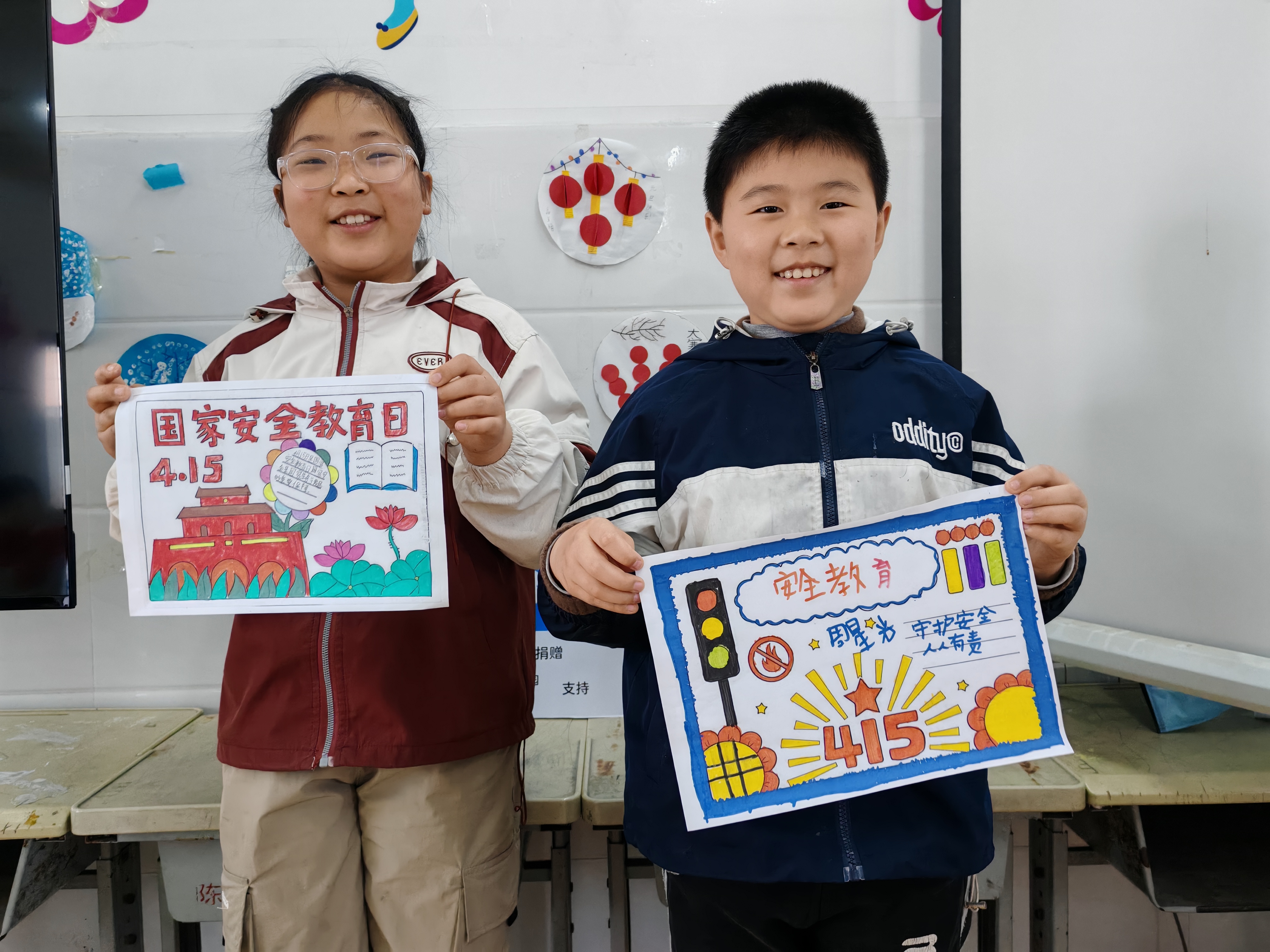 创意实践中,孩子们拿起画笔精心绘制国家安全手抄报,在动手创作中深化学习感悟。