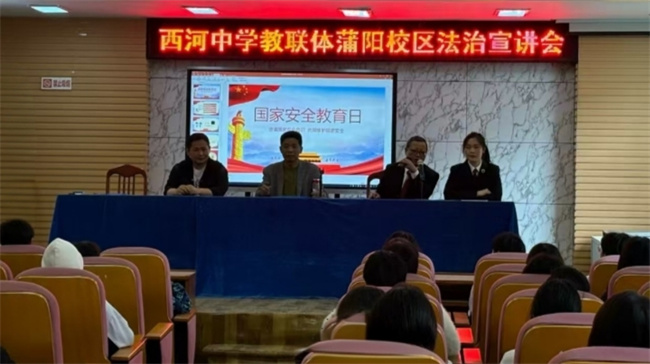 4月13日,应城市西河中学教联体蒲阳校区举行国家安全教育日暨防校园欺凌法治宣讲活动。