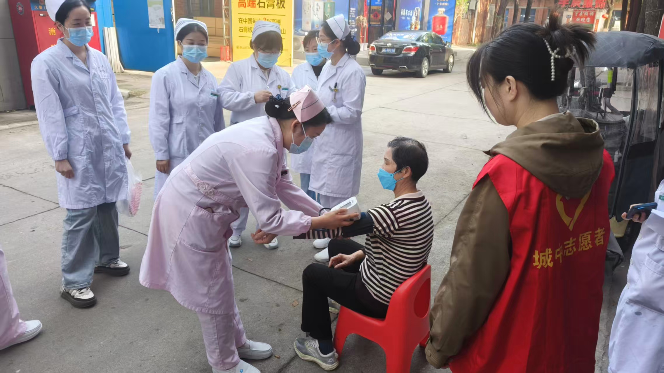 医护团队分组入户,重点为老年、行动不便居民一对一讲解肿瘤预防知识,普及常见肿瘤早期筛查、预防技巧,免费测血压、血糖,解答诊疗、康复疑问,送上科普手册与健康关怀。