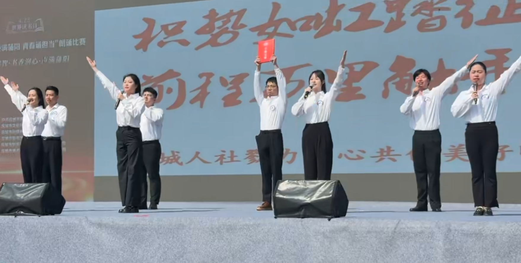 4月17日上午,应城市人力资源和社会保障局组织9名年轻干部,积极参与应城市“书香满蒲阳 青春诵担当”朗诵比赛,获得比赛“二等奖”。