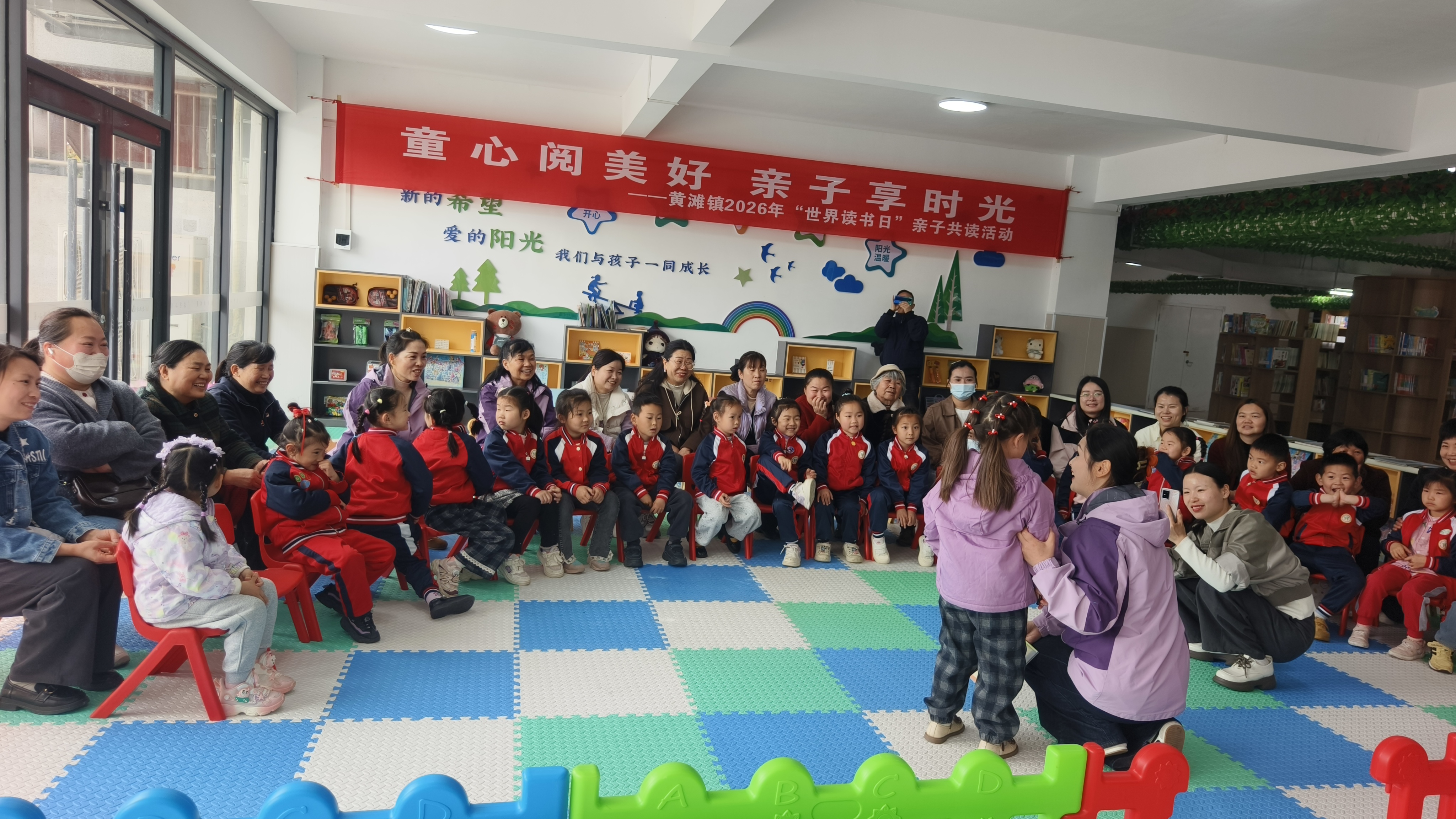 4月23日,世界读书日当天上午,应城市黄滩镇黄滩书屋,一场以“童心阅美好 亲子享时光”为主题的亲子共读活动温情上演,来自辖区的20组3至6岁儿童家庭齐聚一堂,在绘本的世界里感受爱、表达爱,用书香与陪伴记录下一段段温馨的家庭时光。