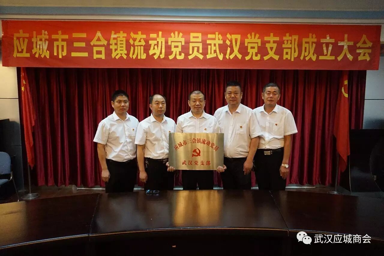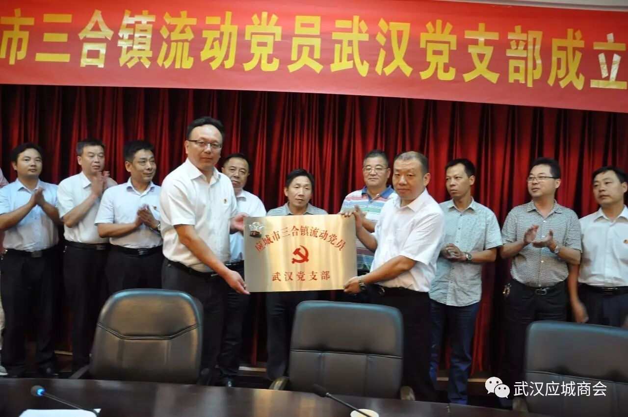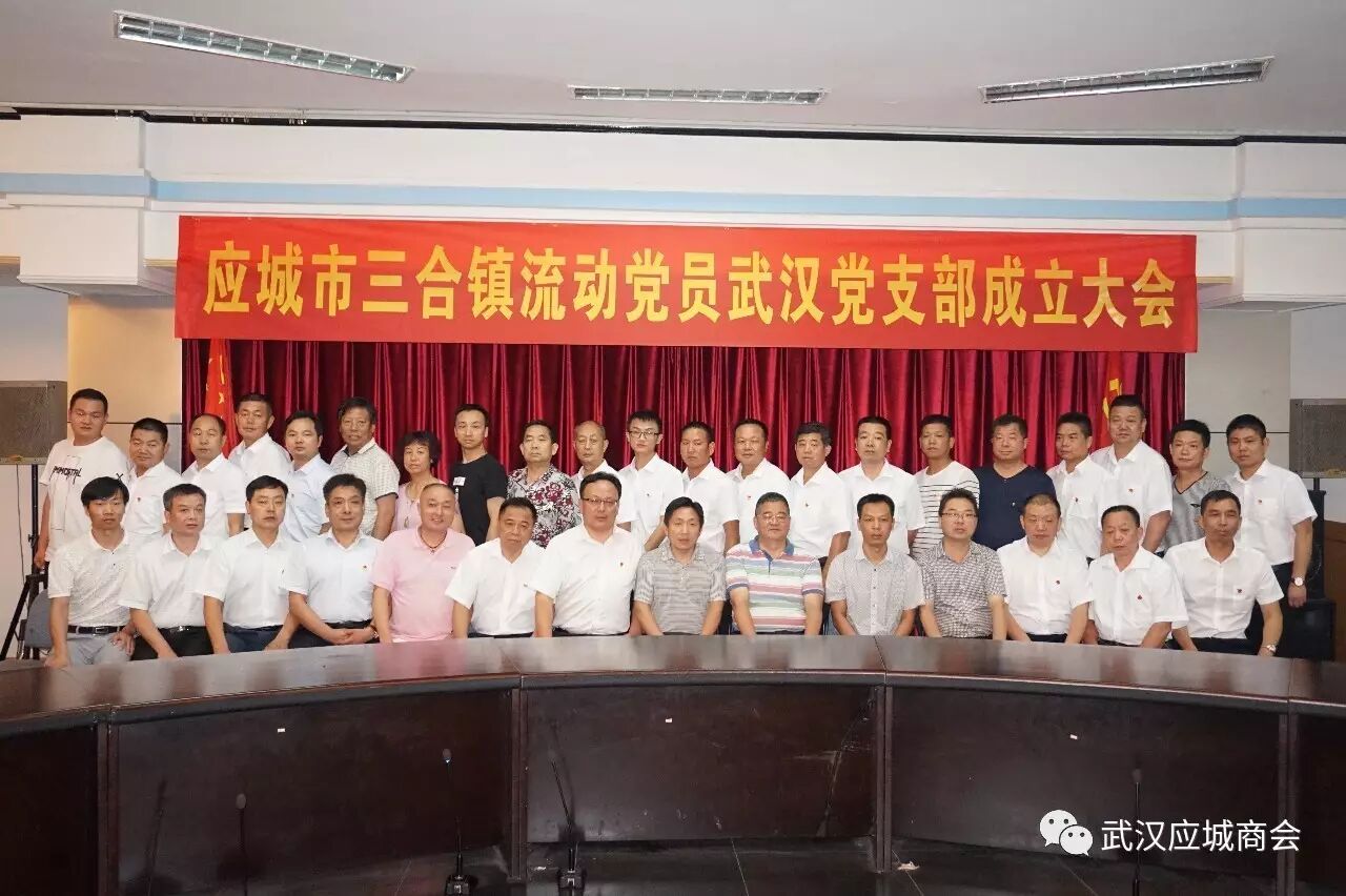 2017年7月1日下午3时,应城市三合镇流动党员武汉党支部在汉正街市场管委会圆桌会议室举行成立大会。这是应、汉两地党委按照“双联双管”模式成立的武汉应城商会党总支第6个流动党员非公党建党支部。
