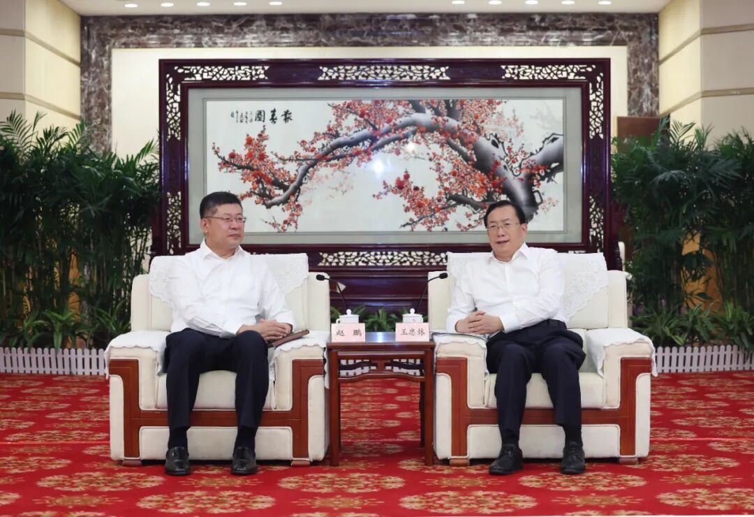 8月16日下午,省委副书记、省长王忠林在武汉与中国人民保险集团党委副书记赵鹏座谈交流。