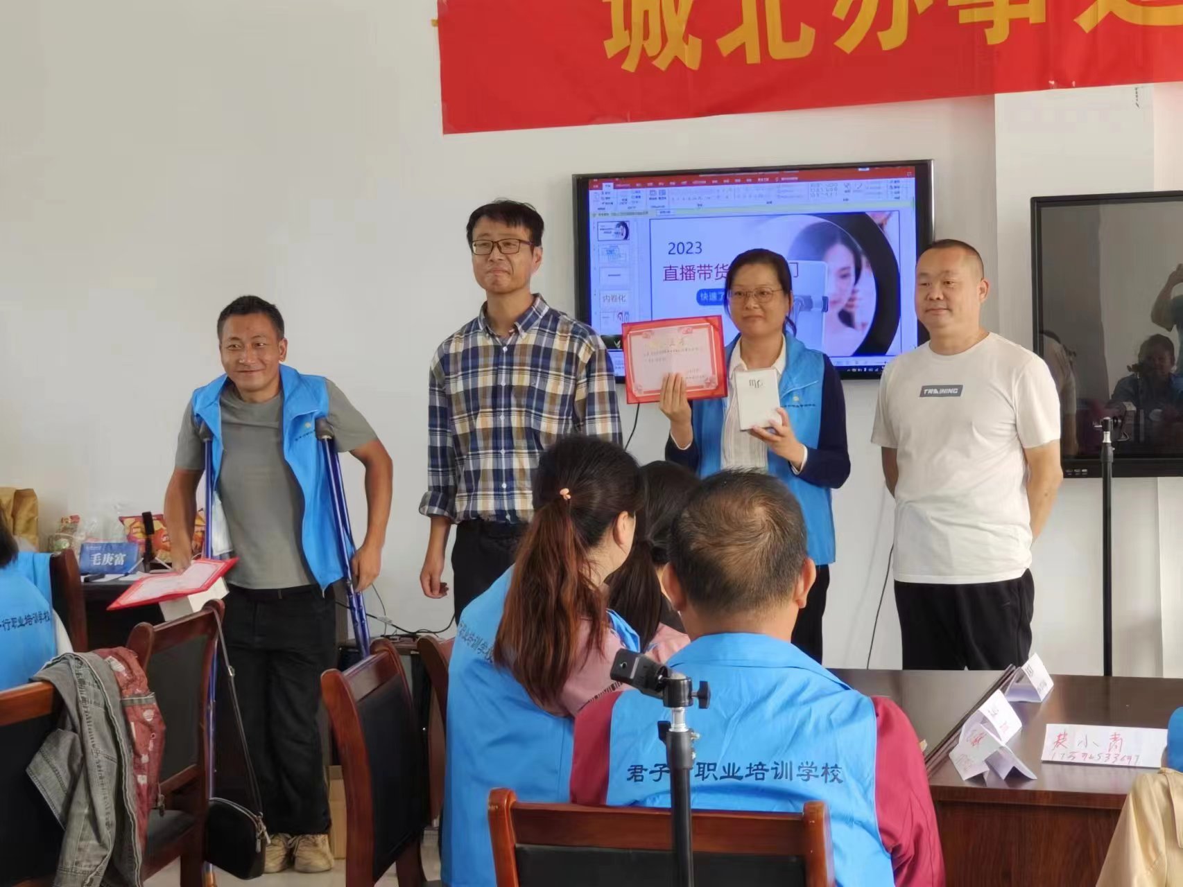 “通过七天的培训,我也学会了直播带货,以后我家种的土豆、红薯再也不愁卖不出去啦。真是要感谢政府为我们在家门口送来这好的技能培训!”9月28日,在应城市城北街道办事处首届网络创业培训班结业课上,应城城北街道办事处戴河村村民戴天喜手捧崭新的结业证书喜孜孜地向培训老师连声道谢。