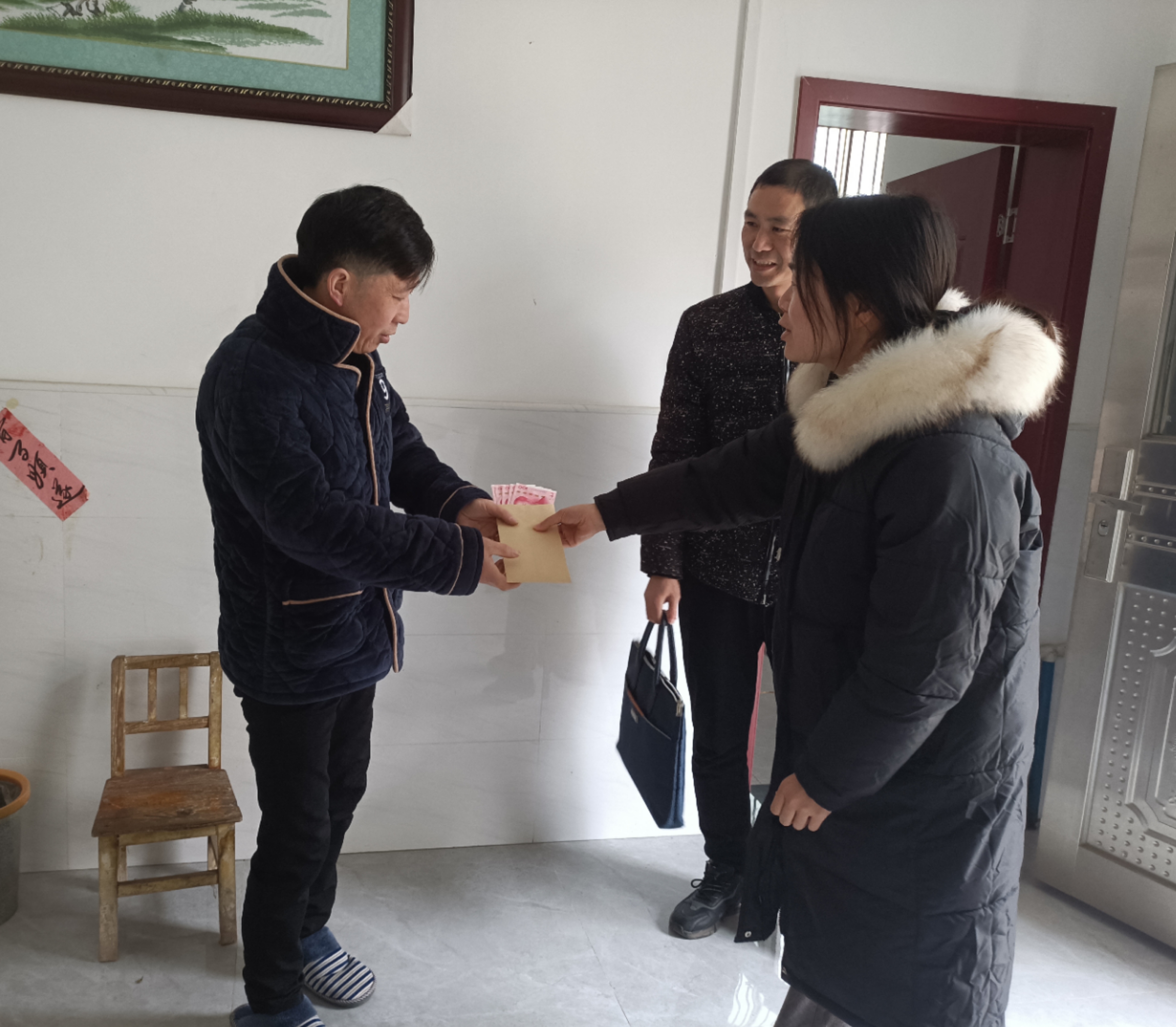 他们亲切地和老人们话家常、问冷暖,“老人家,我们义和政府和医院的人来看您了,最近身体怎么样?”“生活上还有什么困难?”通过对话了解老人的饮食起居、身体状况和家庭情况,倾听她们的心声,同世叮嘱老人注意用气用电安全,有困难及时与村里、医院联系,并提前向她们拜早年,祝老人健康长寿,幸福快乐!