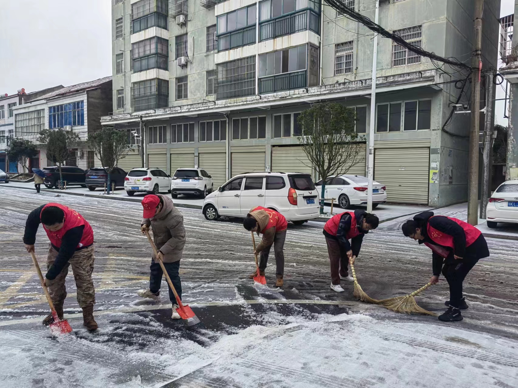 镇村干部、志愿者、公益岗位、机关单位干部带上工具,对辖区内主要路段、急弯、陡坡、易积水结冰道路等事故多发路段进行清理。大家热情高涨、不辞辛劳,经过二个多小时奋战,镇域内主干道、公共活动场所积雪全部清除完毕,道路通行畅通。