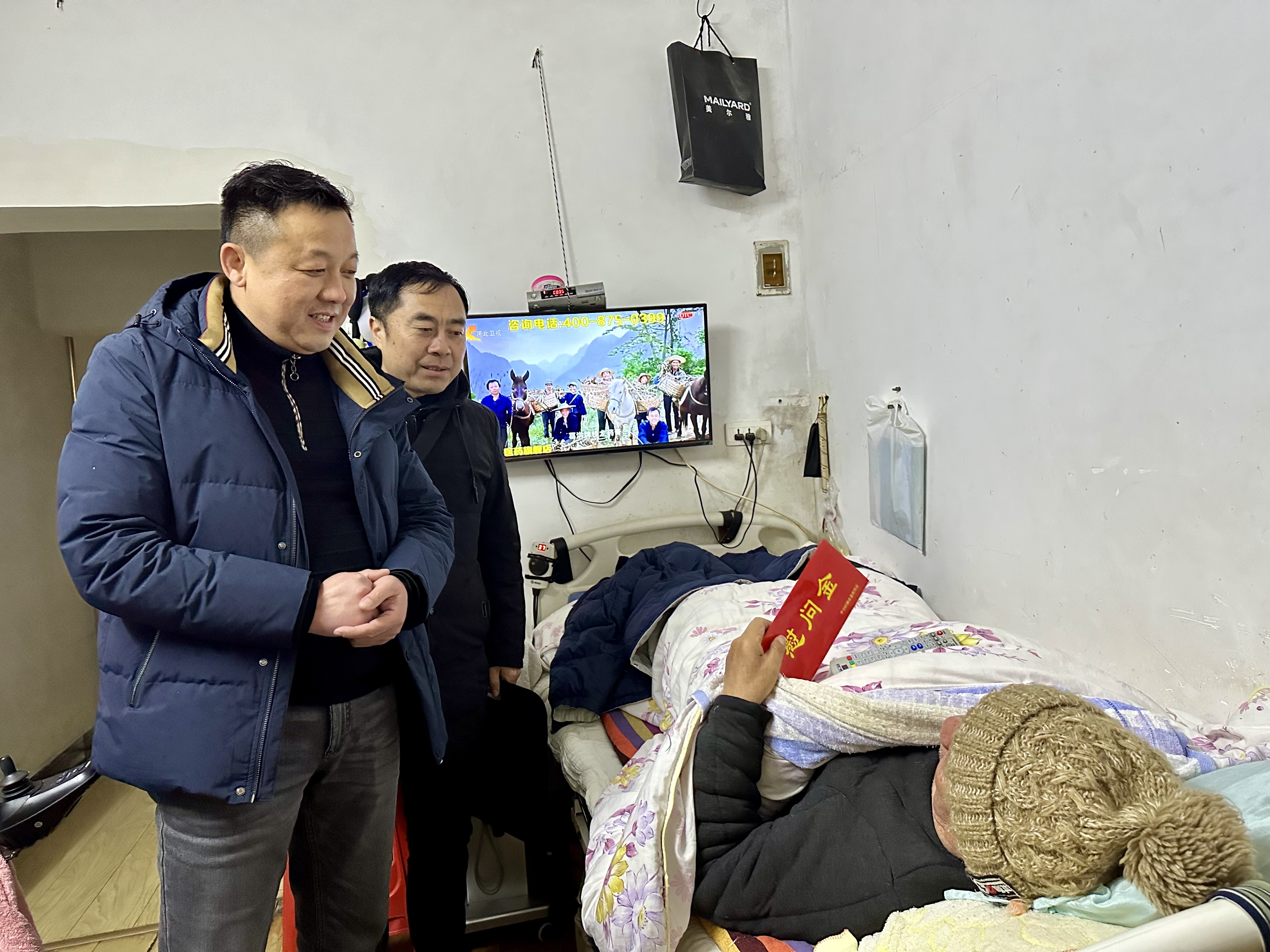 在杨河镇聂程村,镇妇联同志给受访妇女送上了慰问金和春节的祝福,并与其亲切交谈,得知其丈夫和女儿因车祸去世后,她极力收敛悲伤,全力照顾外孙女,镇妇联同志鼓励她一定要积极向上的生活,努力把日子越过越好,不让亲人朋友们担心。