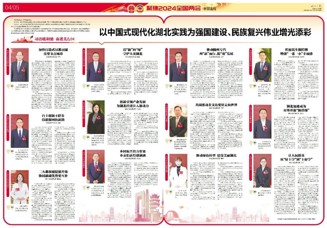 “孝感的发展,是全省高质量发展的生动缩影。”全国人大代表、孝感市委书记胡玖明说,2023年,在省委、省政府坚强领导下,孝感全市上下牢牢把握高质量发展这个首要任务,顽强拼搏、勇毅前行,经济持续回升向好,社会大局保持稳定,高质量发展扎实推进。全市地区生产总值2920亿元,增长6.7%,增速居全省第4位;规上农产品加工产值1300亿元,总量居全省第2位;市场主体总量近50万户,增长18%,增速居全省第2位;工业总产值居全省第4位;城镇和农村常住居民人均可支配收入分别增长6.1%、8.5%,增速均居全省第2位,以孝感之“进”服务湖北之“稳”,为奋进的湖北作出了积极贡献。