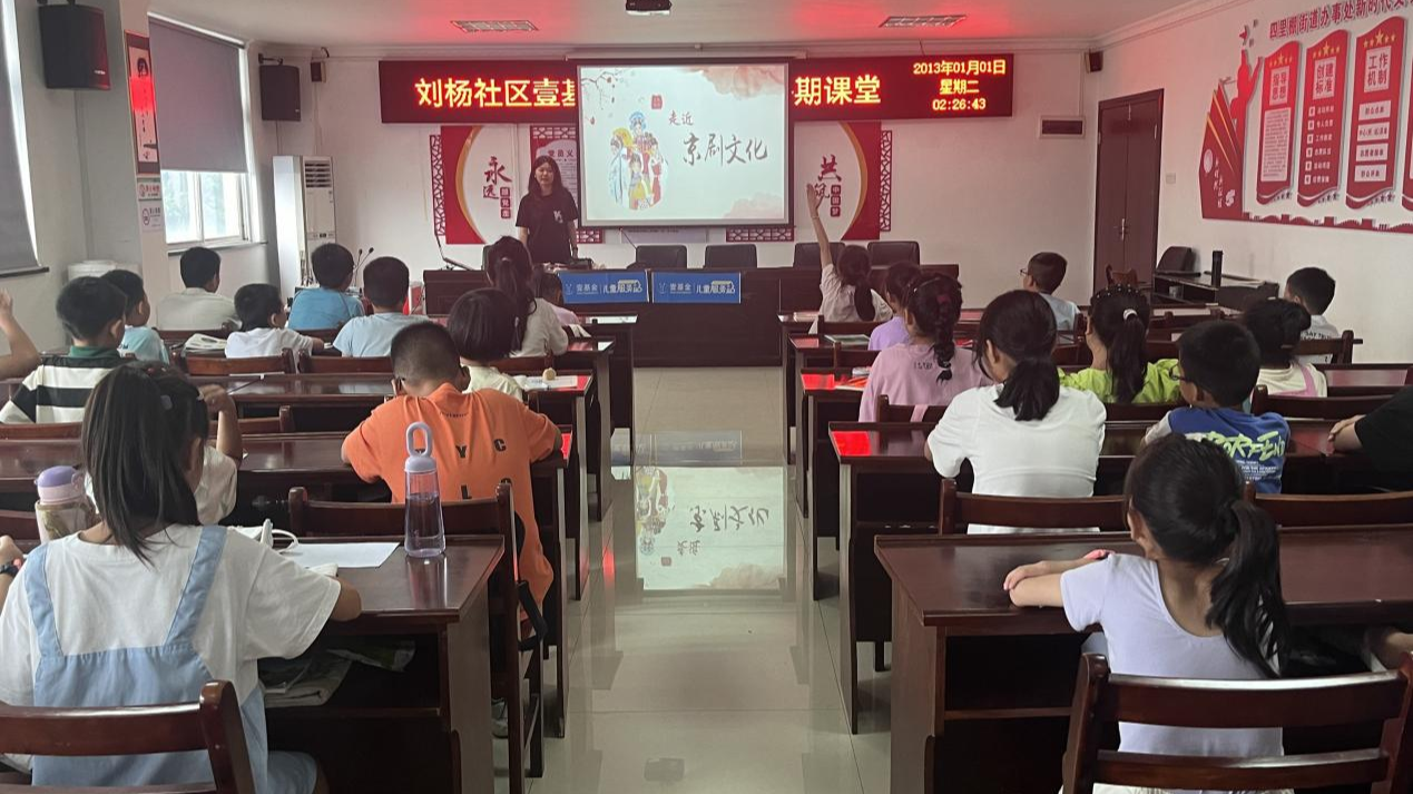 7月14日,来自华中师范大学的支教团成员,为应城市四里棚街道刘杨社区儿童服务站的孩子上了一堂“京剧进社区 国粹润童心”为主题的教育课。